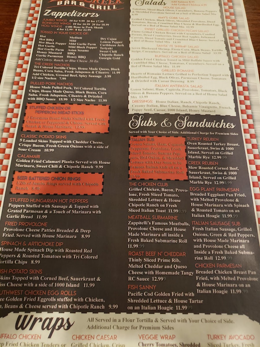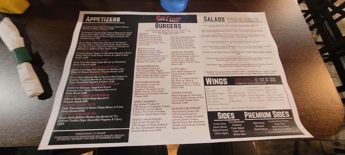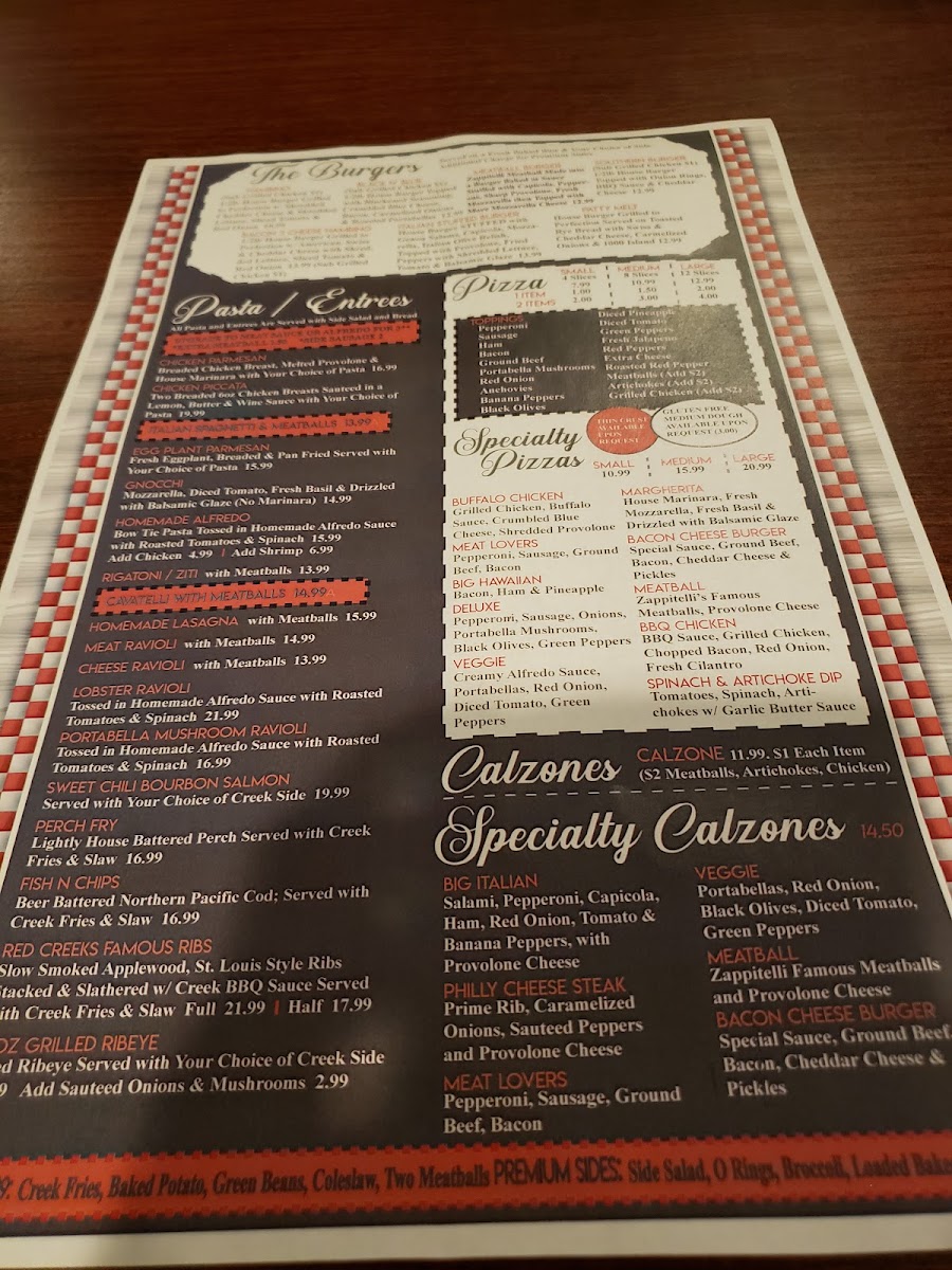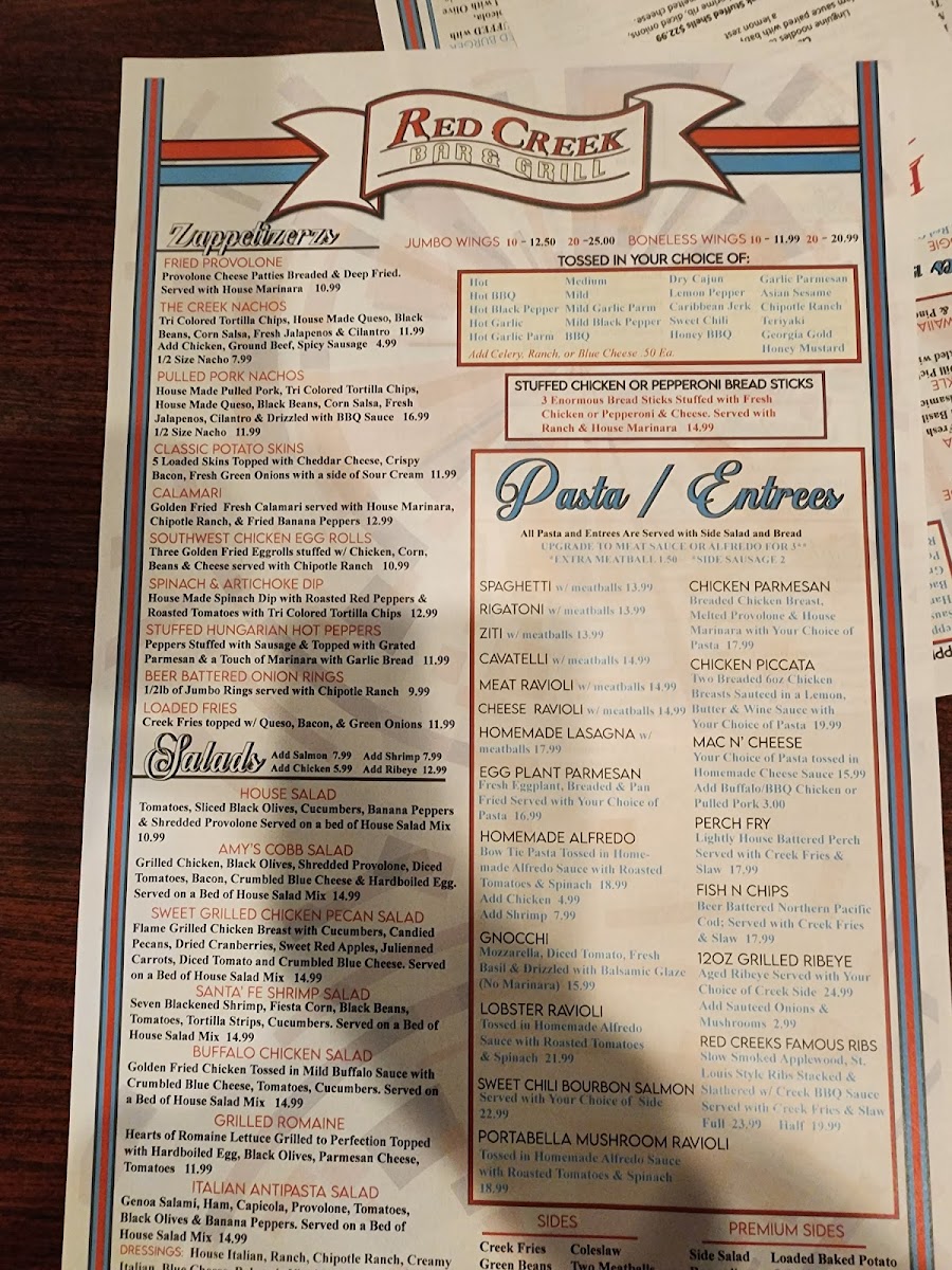 Red Creek Bar & Grill Menu